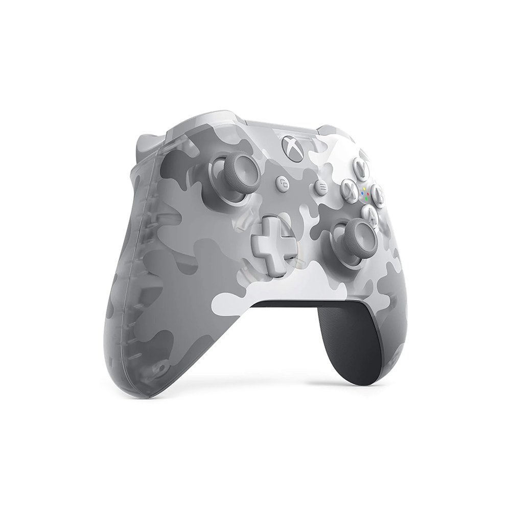 • Experience the Xbox Wireless Controller – Arctic Camo Special Edition, featuring a rugged white and gray camouflage pattern. Get up to 40 hours of battery life